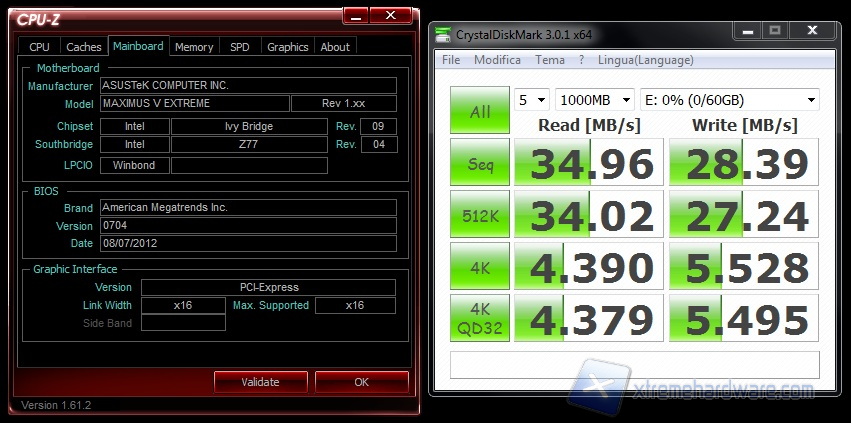 In questa sezione vi proponiamo le velocità di trasferimento rilevate sia sulle porte USB 2.0 che su quelle più performanti USB 3.0. Dato che la Maximus V Extreme è dotata di 2 controller USB 3.0, abbiamo effettuato i test sia sulle porte USB 3.0 controllate dal chipset Intel che sulle porte controllate dal secondo controller ASMedia. Per la rilevazione abbiamo scelto due tool che vanno per la maggiore, ormai conosciuti e adottati come standard di fatto: ATTO e CrystalDiskMark. I test sono effettuati con il pen drive Kingston DT Ultimate 64GB.
