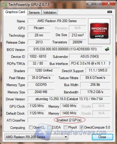 Infine abbiamo voluto provare in CrossfireX un R9 270X e una R9 270 e possiamo dirvi che i due modelli sono completamente compatibili, come si può vedere dallo screen di GPU-Z, ovviamente il CrossfireX girerà alla frequenza della scheda con clock inferiore.